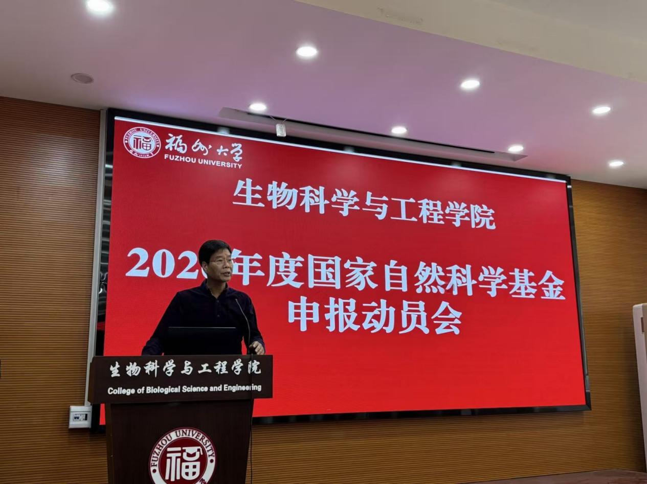 在柏物产厅召开2026年度国家自然科学基金申报动员大会。院党委李礼建书记、院长汪少芸教授、副院长石贤爱教授以及学院30余名教师代表参加了本次会议,共同为新一年度科研攻坚谋篇布局。