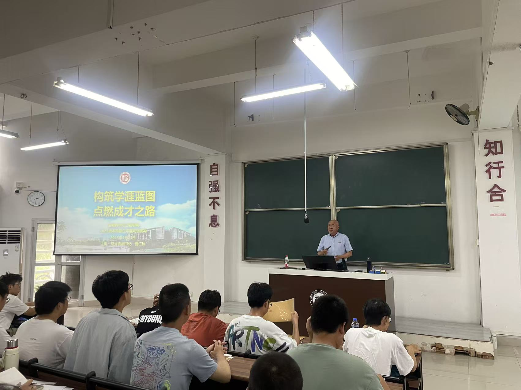 为引导2025级本科新生科学规划大学生活,树立成长目标,9月23日下午,学院党委曹仁秋副书记在铜盘校区B315为全体本科新生带来了一场主题为《融入与超越,迈好大学第一步》的生涯规划专题辅导讲座。