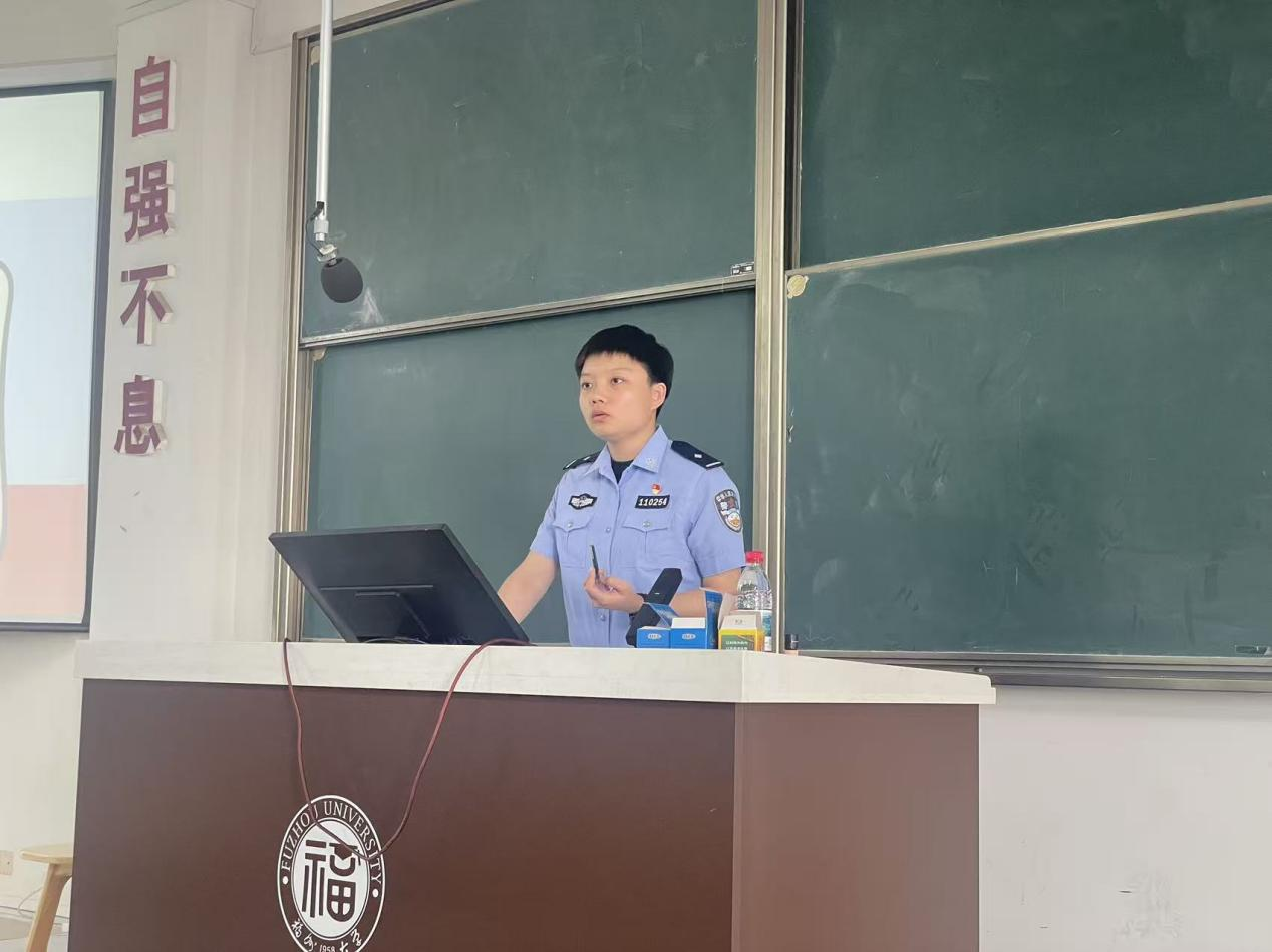 邀请福州市公安局鼓楼分局五凤派出所夏峰警官、赵汇警官,在铜盘校区B315教室开展“防范电信诈骗,警民携手同行”主题安全教育讲座。