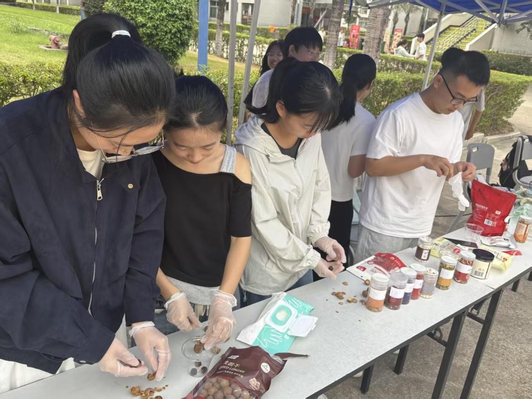 为深化专业实践与健康理念传播,11月9日,25级食品一班团支部联合至诚学院食品二班团支部,于铜盘校区食堂门前共同开展了“药食同源,健康同行——中医药膳养生茶”主题科普体验活动。活动立足于“学、思、践、悟、行”五个维度,融合专业特色与青年创意,旨在普及中医药食同源文化,强化健康养生意识,引导学生在服务中践行专业所学,弘扬传统中医药智慧。