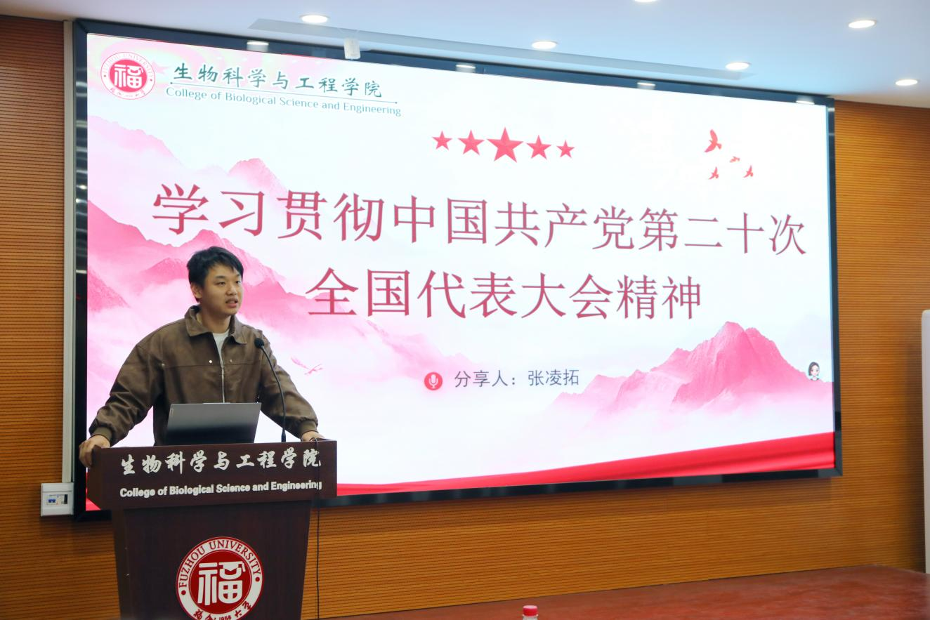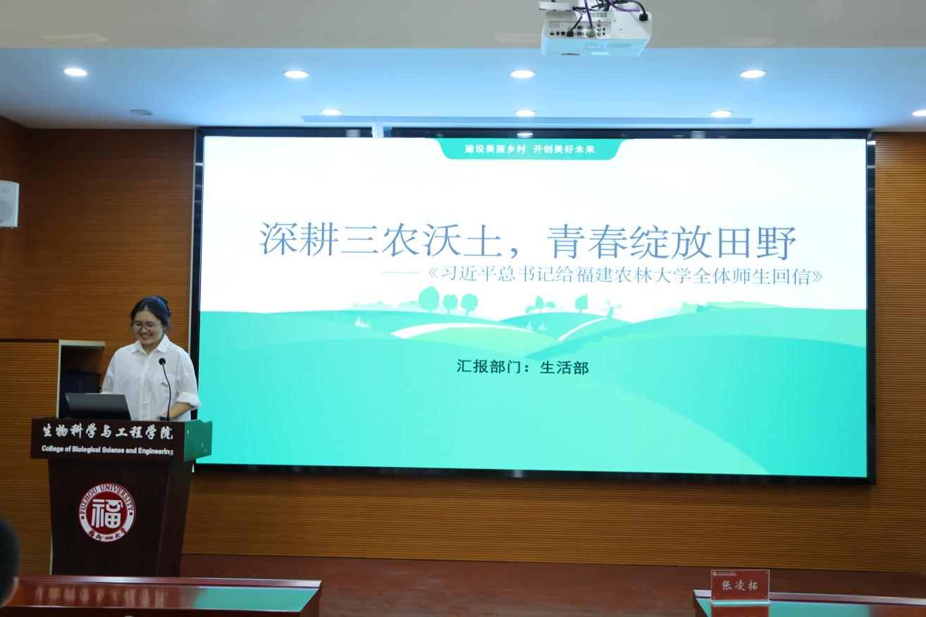 学习研讨会环节,三名本科生学生骨干聚焦《习近平总书记给福建农林大学全体师生回信》、《习近平总书记在中国共产党第二十次全国代表大会上的报告》、《在中华全国学生联合会第二十八大代表大会上的工作报告》等重要报告,围绕习近平总书记“深耕‘三农’”的殷切嘱托,以及党的二十大报告中“中国式现代化”的实践问题,结合自身成长与实践经历,分享了自己的学习感悟。