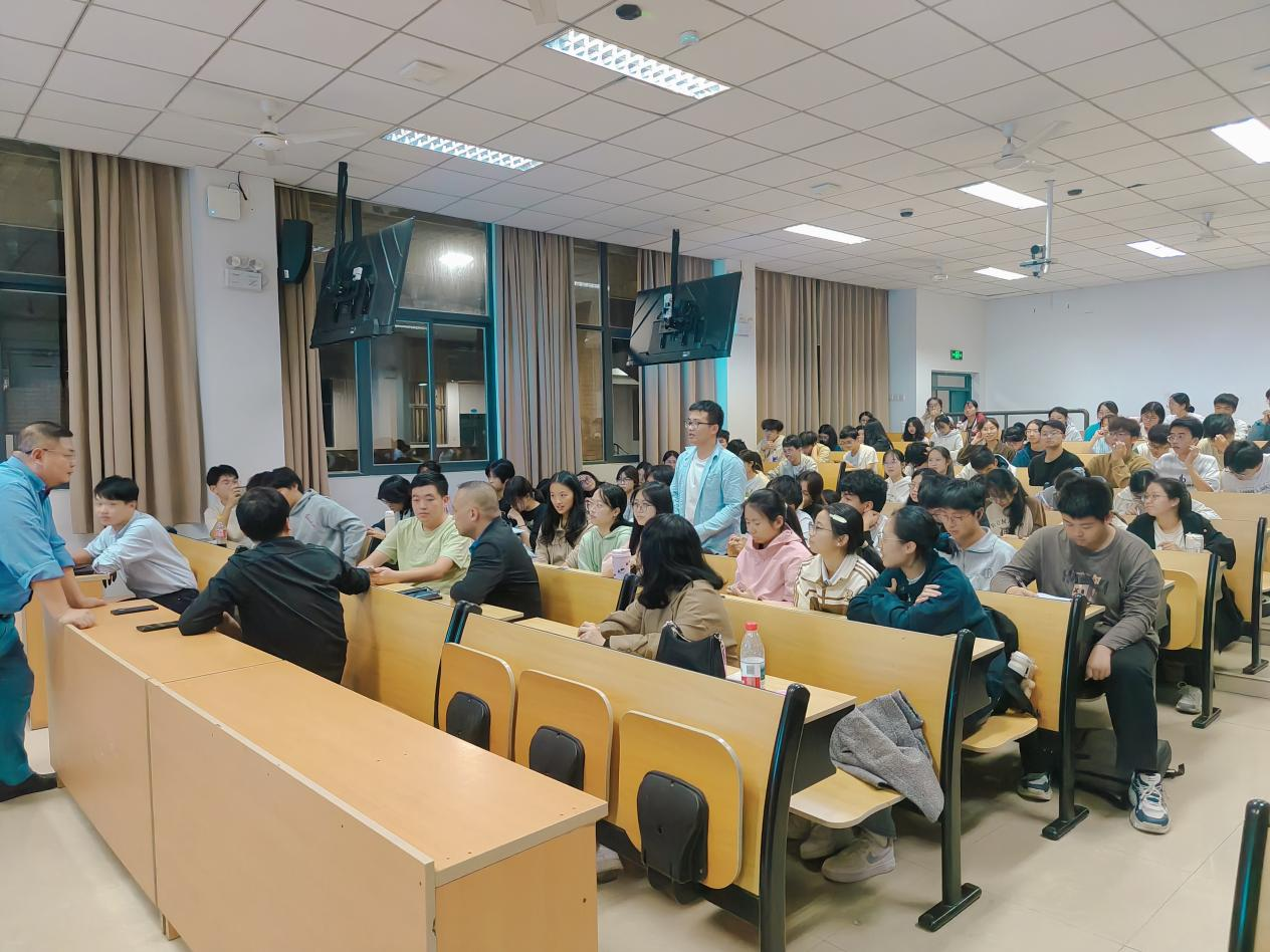 互动环节气氛热烈,学生围绕“专业就业方向”“科研与实习平衡”等困惑积极提问,陈祖喜校友结合行业经验,详解企业需求与创业风控;肖子阳校友从职业规划角度,回答同学关于实习与求职准备的提问;林向阳教授则结合教学科研实例拆解难点、讲解应用,回答专业知识问题。随后,林向阳教授为陈祖喜、肖子阳颁发“就业创业导师”聘书。
