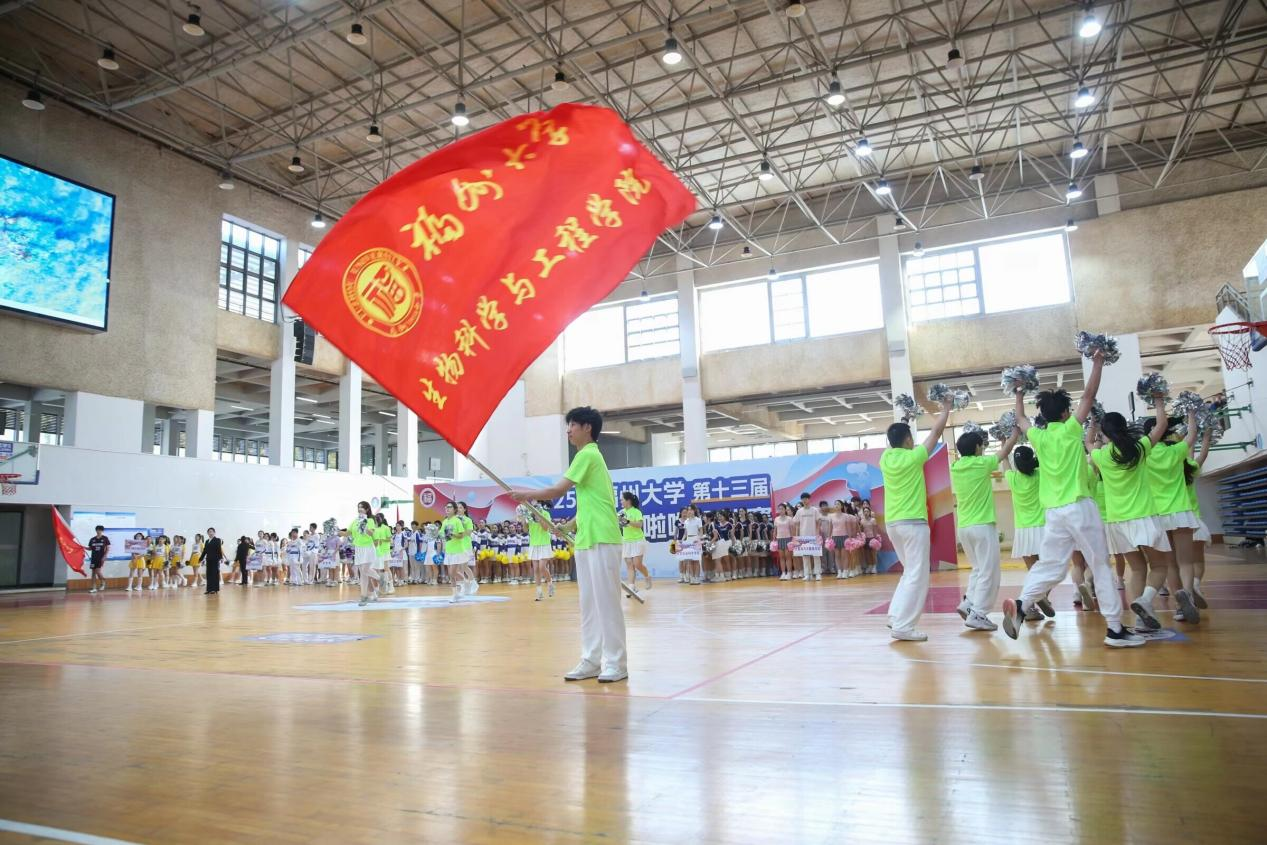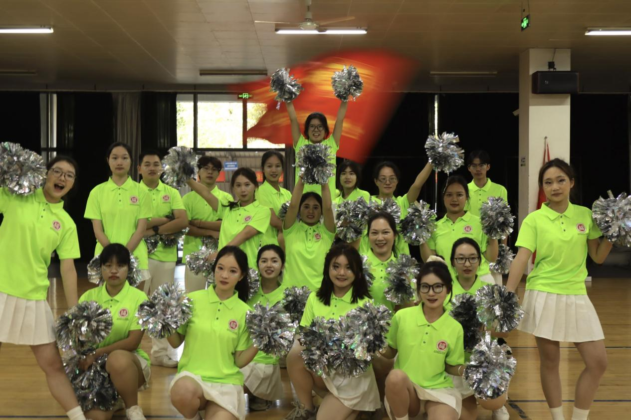 “Get Ready Go!”动感旋律一响起,队员们便切换至最佳状态。荧光绿色上衣搭配白色裙摆,亮眼配色既呼应生工学子探索未知的热忱,又尽显蓬勃朝气。花球挥舞划出灵动弧线,起落间满是活力;转身、托举、踢腿一气呵成,动作整齐划一,每一个节拍都踩得精准有力。队员们眼神坚定,笑容灿烂,将训练中扎实功底与团队默契配合展现得淋漓尽致,用热情与活力感染着现场所有人,成为赛场上一道亮丽的风景线。本次比赛成绩,既是对队员们辛勤付出的认可,更彰显了“精益求精、敢拼敢赢”的良好风貌!