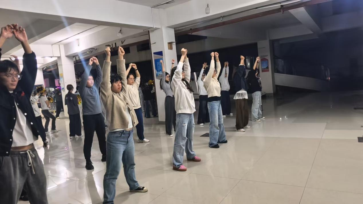 在一个多月的高强度集训中,队员们始终精益求精。从抬手角度的细节比对,到跳跃力度的精准把控;从队形变换的默契配合,到节奏卡点的反复打磨,每个细节都凝聚着汗水与专注。他们用汗水与坚持,为赛场表现筑牢坚实基础。