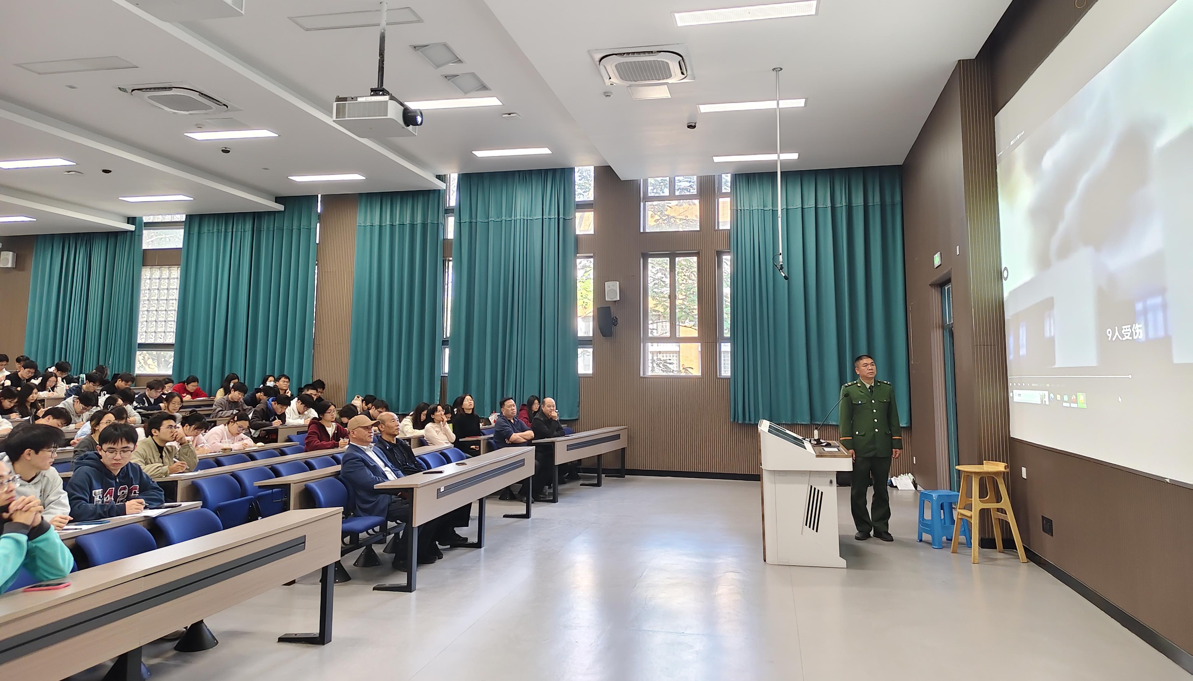 活动伊始,辅导员邓屹老师介绍了出席嘉宾及活动背景。随后,林鸿芬教官以“实验安全,生命至上”为主题,介绍了演练背景与目的。他指出,实验室作为科研重地,潜藏着多种安全风险:危化品性质活泼,部分易燃易爆;设备老化、线路过载、操作不规范、环境杂乱等问题,极易引发火灾、爆炸或中毒事故。一旦出事,不仅损毁仪器、损失成果,更会危及人员安全,造成严重后果。